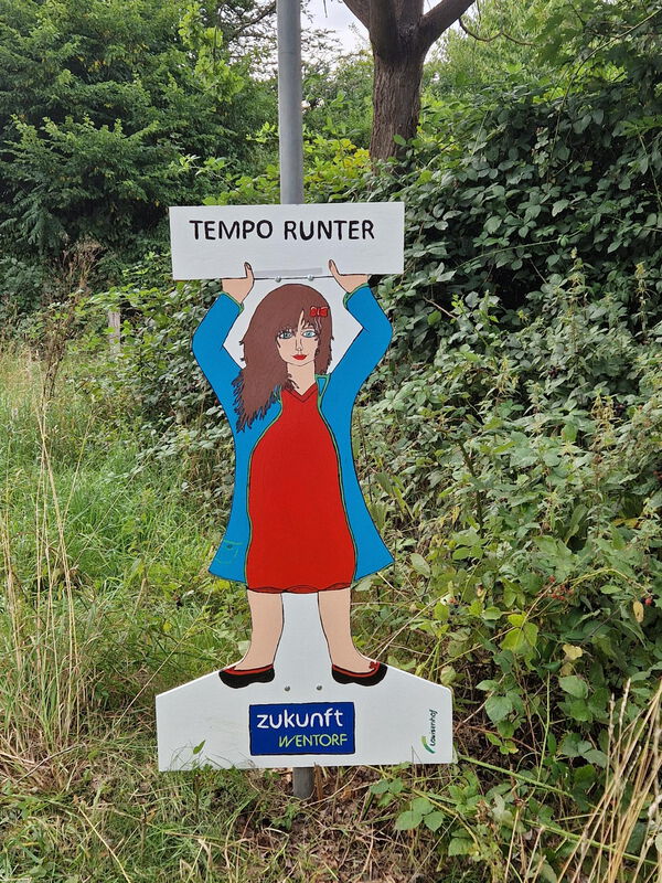 Wir haben an sensiblen Stellen im Ort Hinweisschilder dazu aufgestellt, diese wurden im Louisenhof, einem Wohn- und Arbeitsprojekt fĂĽr Menschen mit Behinderung, hergestellt.